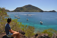 So far the Saintes have been our favourite place to visit. Every island has its merits, its attractions and its beauties, but for some reason the Saintes have captured our interest in a way that no other island has. Being a small group of islands, everything is compact and close together, and the islanders are very lively. Last Sunday as Mom, Sarah and I hiked the tallest peak (1000 feet high) to an old stone watch tower, we could hear music blasting from tents in the village as a sailing race took place on the bay.